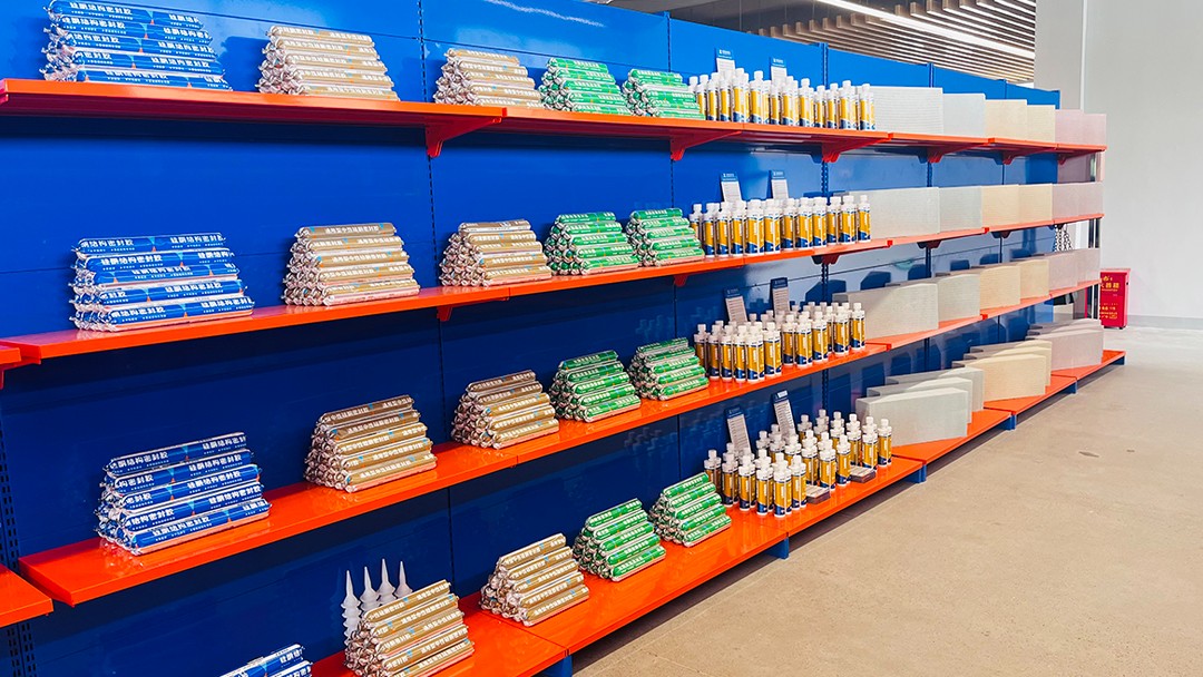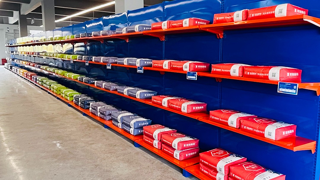 忠信一站式选材仓库相当于近2个标准足球场大小,品种覆盖水电工、泥工、木工和油漆工所涉材料,大到墙板小到螺钉一应俱全。该选材仓库除了忠信自有品牌系列产品(防水抹灰砂浆、自流平砂浆、灌浆料等多种功能性砂浆、PC砖、轻质ALC墙板、加气块、PC构件等),还引进了国内一线品牌瓷砖、岩板、饰面板、基层板、轻钢龙骨、五金水电、涂料管材、电线电缆等高端建材,真正实现了省心又省力的一站式建材采购体验,颠覆碎片化的建材采购模式,真正实现仓库直购的省钱模式。